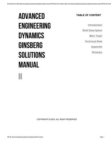 Read Online ADVANCED ENGINEERING DYNAMICS GINSBERG SOLUTIONS MANUAL Epub
